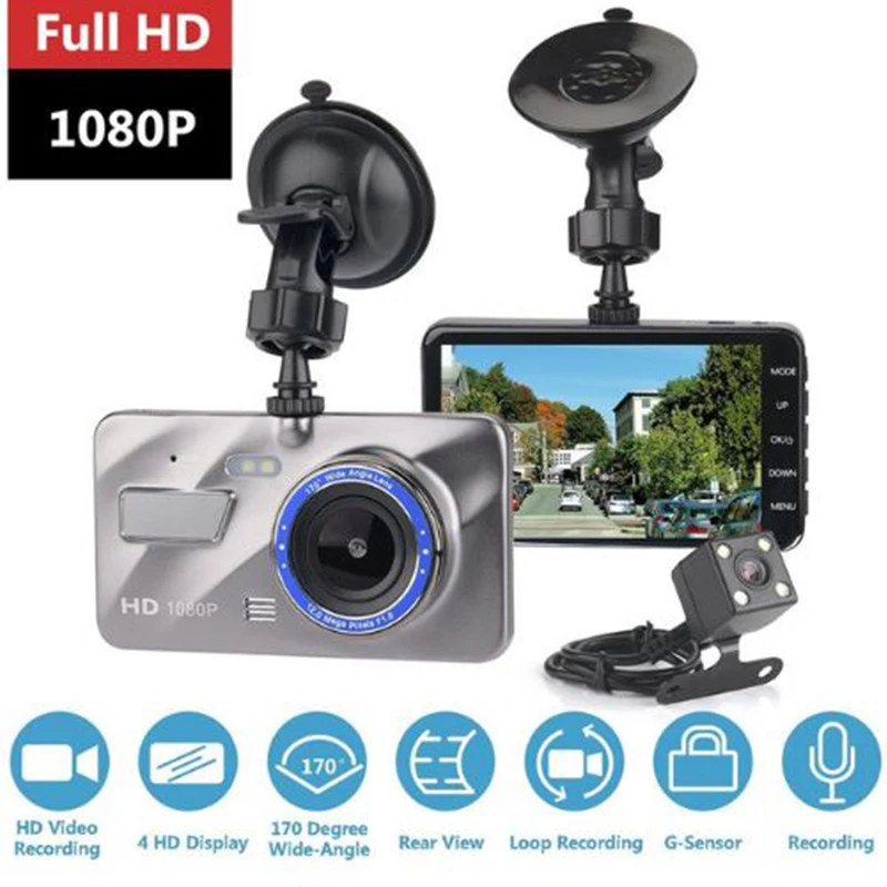 Dash Cam 4" IPS Dual Lens Car Camera Front+Rear Backup DVR Full HD 1080P 170 Degree Recorder Rearview Night Vision Registrator