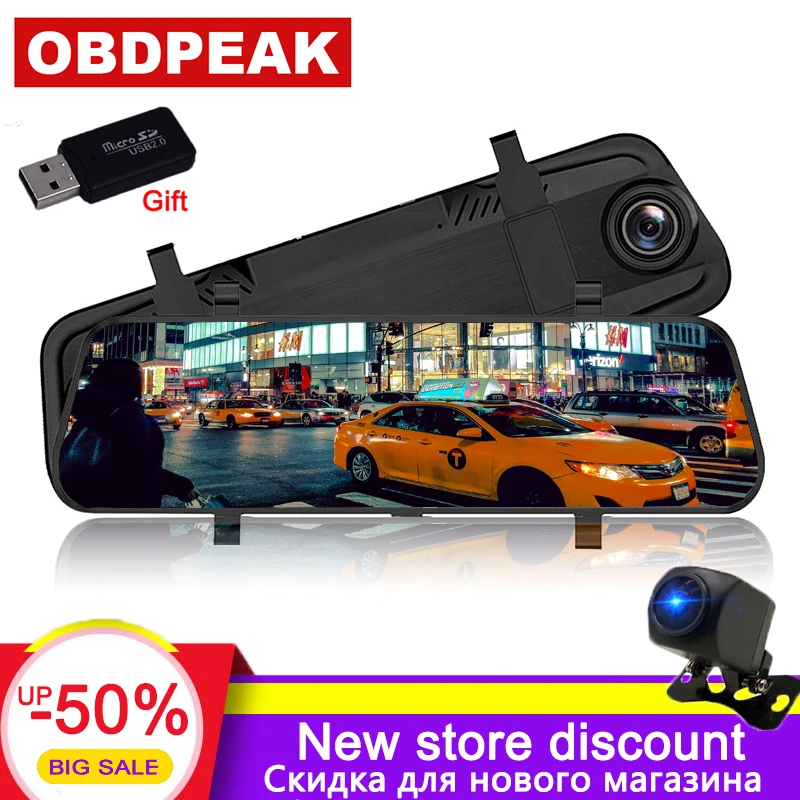 Dash cam 10" stream media Car Rearview Mirror DVR mirror Super night vision 1080P Car camera two cameras Video Recorder Dash cam