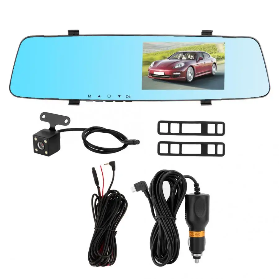 dash cam 4.3" Car DVR HD 1080P Dual Lens Front Rear Video Recording Backup Rearview Mirror Camera car accessories