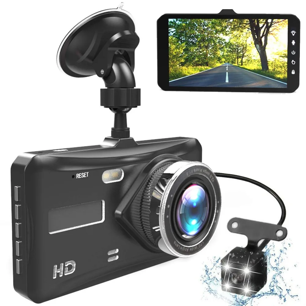 Dash Cam Dual Lens Full HD 1080P 4" IPS Car DVR Vehicle Camera Front+Rear Night Vision Video Recorder G-sensor Parking Mode WDR