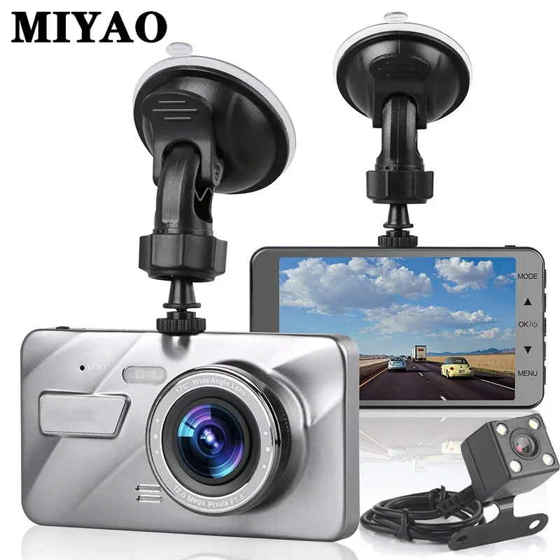 Dash Cam Dual Lens DashCam Car DVR Camera Full HD 1080P 4" IPS Front+Rear Night Vision Video Recorder Parking Monitor G-Sensor